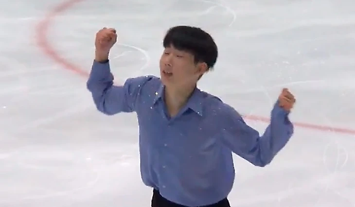 Зато кореец в этом этапе нам выпал хороший: музыку слышит, красиво эмоционально катит, по мелочи вращение скосячил, закончить под музыку не успел. Ну хоть программу прожил «от и до», даже без трикселя зашёл на ура. Место пока 7е и, боюсь, в ПП ничего не светит, без квадов-то.