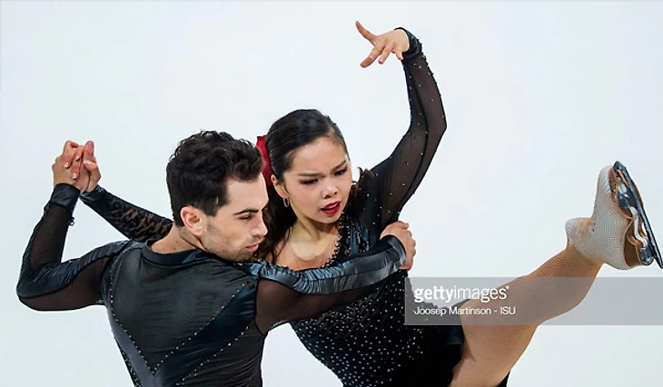 Марджори из Канады вышла в красивой клумбе и новой похудевшей фигуре. Не понравилась: кривляния лицом не спасают от скучности и топорности программу, и от морального отсутствия Закари на льду не спасают. Нужно отдать должное — танцоры опытные, скольжение и рёбра на уровне, а спина пловца барже Марже не мешает, а даже помогает в этом припортовом танго. Пока вторые, так попрошу и оставить.