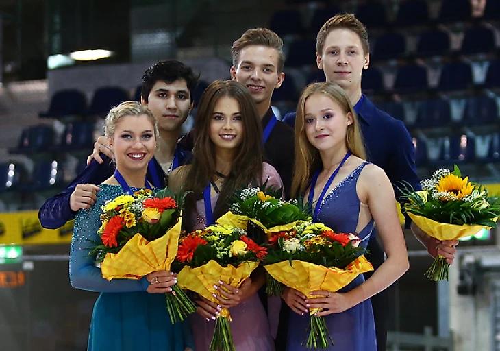 15-летние австрийские близняшки Хубер старательно выполняли элементы под «Ромео и Джульетту». Детский сад, младшая группа. Шариз Маттэй уронила Пфистерера на вращении.