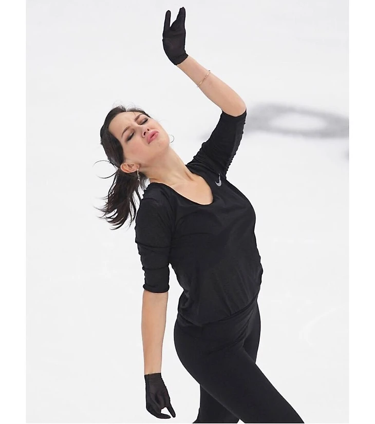 Что действительно было интересно - Алина Загитова, олимпийская чемпионка Пхенчхана, вышла разминаться еще во время выступлений парников. Делала это очень активно, и по ней было видно, что очень сильно волновалась.