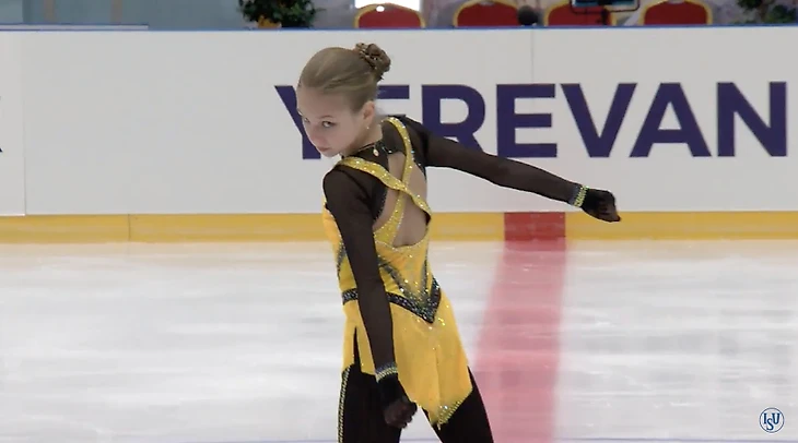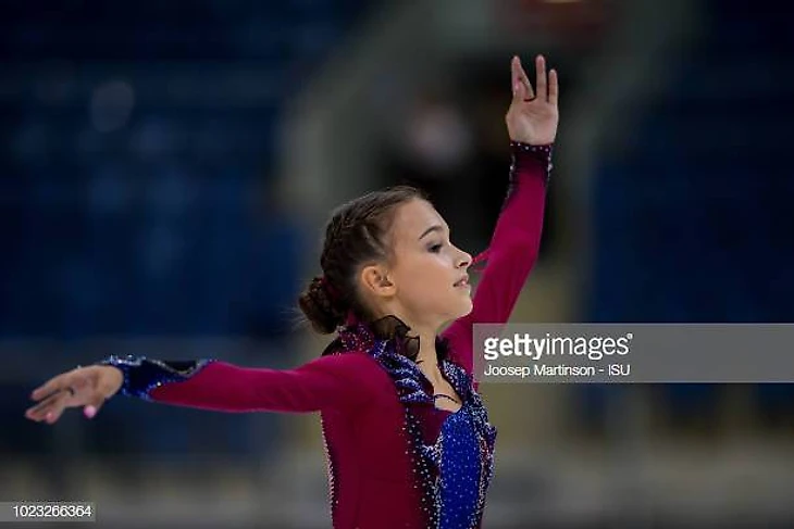 Третье место с некоторым запасом занимает Ксения Синицына, и объективная причина тому - более сложный риттовый каскад 3Lz-3Lo. Как и ойлерник, он помогает добиться самых выгодных повторов в произвольной, но его дополнительное преимущество - возможность также усилить короткую почти на балл. По крайней мере, в тот год когда ритт не обязательный прыжок. Но Ксении, к сожалению, своим преимуществом воспользоваться практически не удалось. У взрослых похожий по сложности контент прыгают Алина Загитова и Брейди Теннелл. Немного дороже (но всего на пару баллов) контент Туктамышевой с двумя трикселями и непродуманным набором тройных.