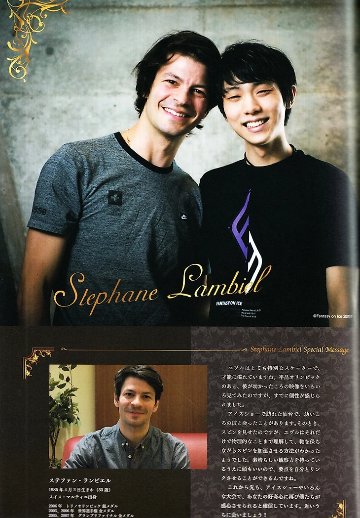 Юзуру Ханю: «Кажется в итоге все молились за мое здоровье. (смеется) Юто Кавагути-сан потрясающа, она до сих пор может выполнять четверной выброс. В этот раз я видел, как она их делала. Так как есть множество различной музыки, под которую я сейчас хочу кататься, мне хочется достичь того уровня, когда я смогу передать мой опыт и знания. Для того, чтобы я мог ездить по всему миру и не только в Японии, мне надо больше практиковать английский. И еще я хочу немного поучить русский. Также потому, что мне хочется говорить с Плю-саном. (смеется) Включая все это есть также множество вещей, которым я хочу научиться.»