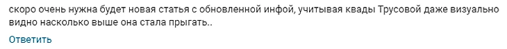 Собственно по данным , когда я некоторое время в комментариях на какой то ветке писал что Трусова и Щербакова прыгают квадлутц на одну и ту же высоту 52 см плюс минус сантиметр в рамках погрешности измерений меня подняли на смех , типа Саша атлетичная а в Анне не понятно за счет чего жизнь теплится такая она худенькая и слабенькая .