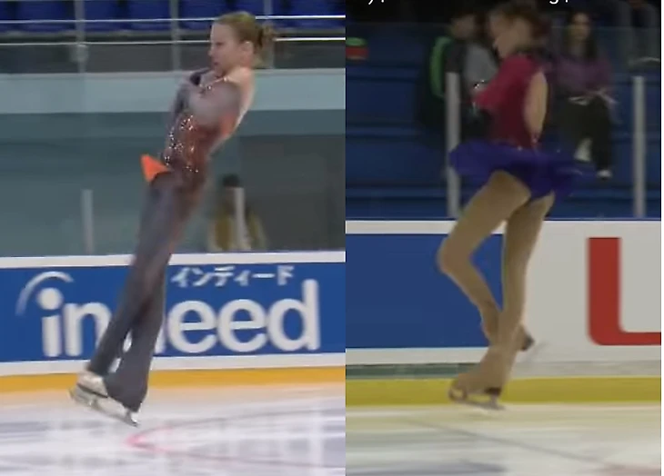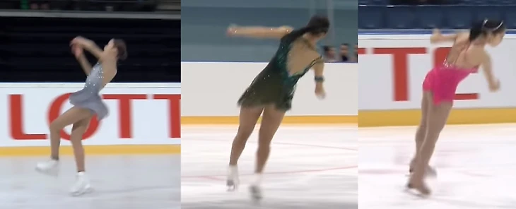 (*В этом посте ни у одной из одиночниц ни разу не вышло более 90 на акселе, и почти ни разу не получилось больше 180 на тройных - 210 градусов на отдельных попытках мы засчитали всего несколько раз)