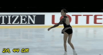 Поздравим первую победительницу - Ким Э-Рим набирает уверенные 42 см в копилку финального рейтинга. Так выглядел один из её двойных акселей на ЮГП: