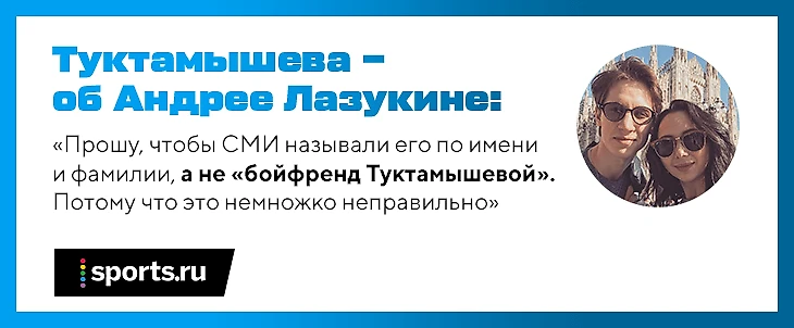 Туктамышева: «В первую очередь я бы хотела сказать, что Андрей представитель сборной команды России. И прошу, чтобы СМИ называли его по имени и фамилии, а не «бойфренд Туктамышевой». Потому что это немножко неправильно, на мой взгляд».