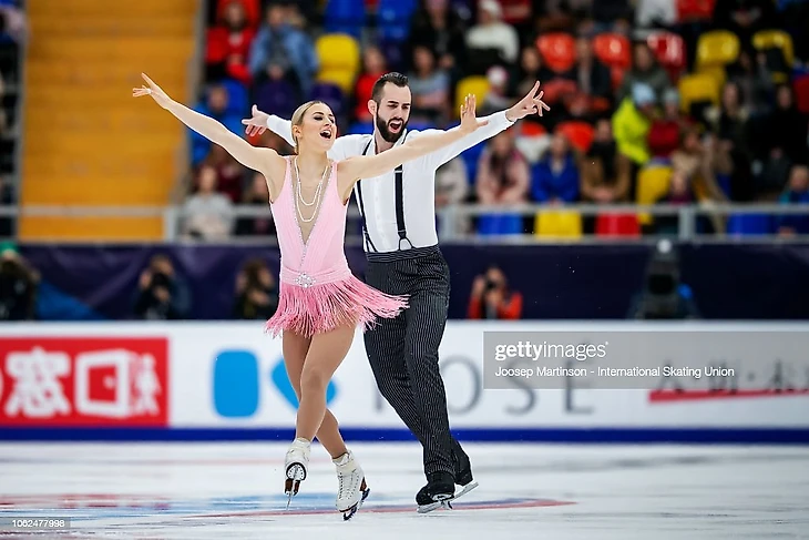 Степанову и Букина продолжают преследовать какие-то заминки: то конфетти летают во время проката, то начало произвольного задерживают из-за выставления оценок предыдущим участникам. Но чего у них не отнять – они умеют собираться. Ритмический танец не удалось показать в полную силу из-за Сашиной ошибки, а вот произвольный был исполнен на все деньги, и это было круто. Программа уже сейчас настолько вкатана, будто бы на календаре конец сезона. Много крутых фишек (концовка, выход из твиззлов) и обыгранных акцентов (особенно мне нравится, как точно на замедляющуюся музыку ложится последняя поддержка). Что-то похожее они пытались делать в «Либертанго», но по сравнению с ним видно, как выросла пара за эти два года.