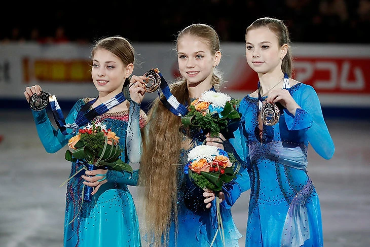 Алена Косторная, Александра Трусова, Анастасия Тараканова (слева направо)