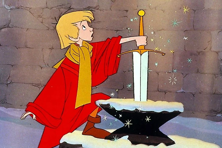 - “Так мальчик, сегодня великий день, вот тебе гора посуды, сиди и перемывай её, а взрослые дяди пошли важным делом заниматься, волшебный меч “Экскалибур” из камня вытаскивать. Кто его вытащит – станет новым королём!”.