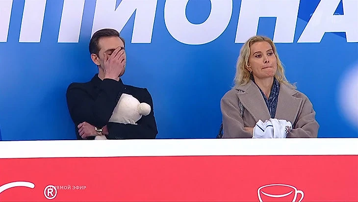 Тренеры Этери Тутберидзе и Даниил Глейхенгауз в ужасе наблюдали за срывами Алины. И все это напоминало ЧМ-2018, когда в произвольной фигуристка так же рассыпалась и уже не собрала программу.