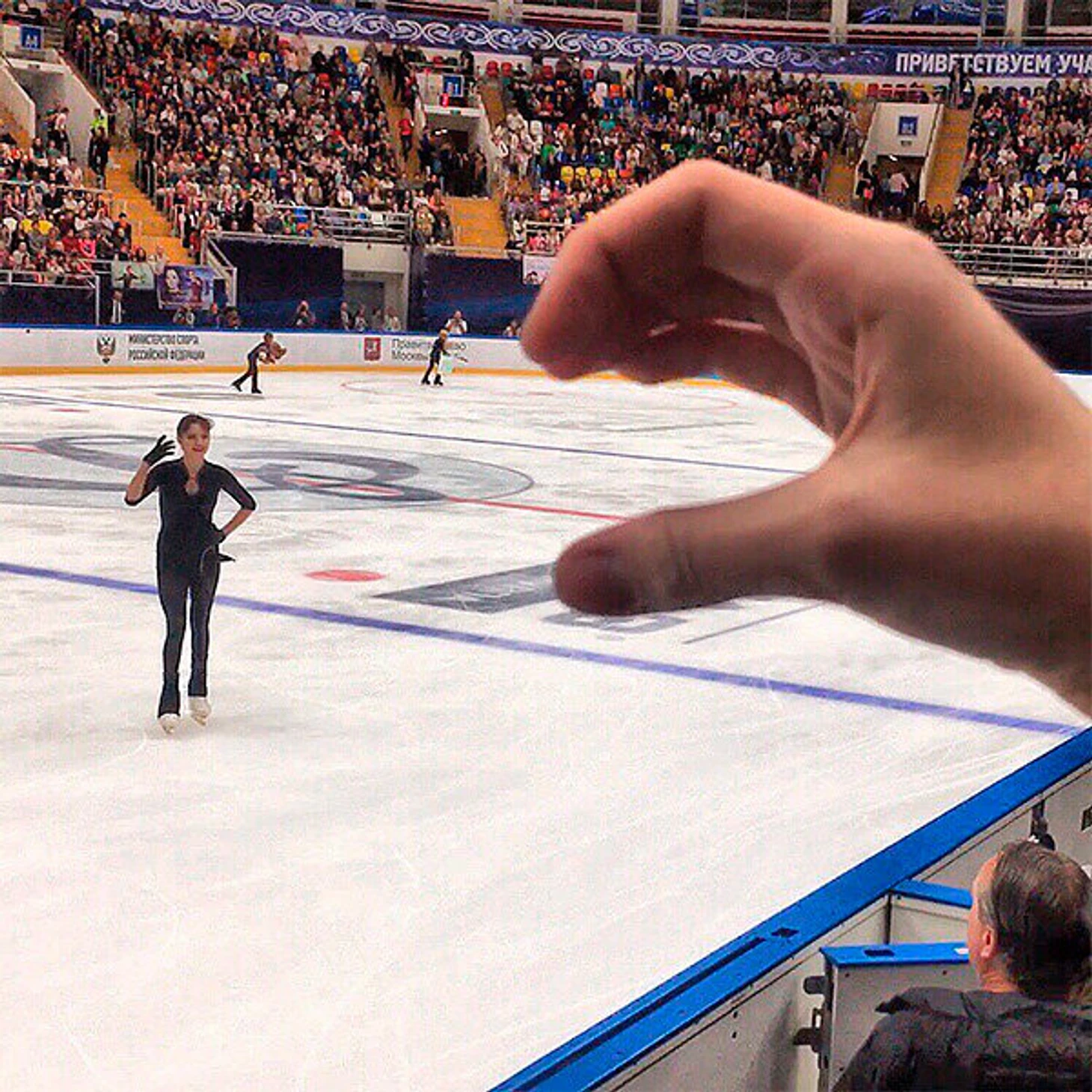 Хотела бросить пельмени после короткой программы, но Женя откатала не очень – отложила подарок на произвольную, где Женя уже улыбалась. Волновалась совсем чуть-чуть, мне было смешно: воплотила мем в жизнь. Женя пельмени не поднимала, она их тогда даже не видела. Болельщики вокруг никак не реагировали, видимо, не поняли, что там я бросила.