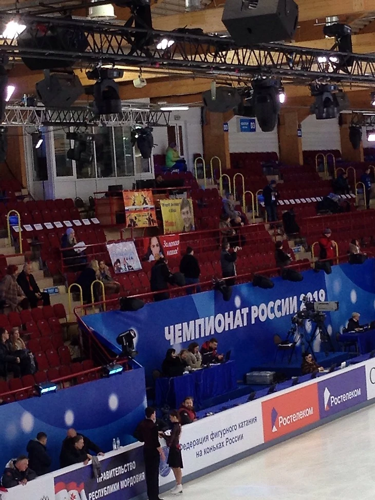 Организация ЧР "впечатлила" меня с самого первого шага внутри ледового дворца. Дворцу много лет, он принимал ЧР несколько раз, плюс ПР, ФКР, этап ЮГП и Б-шку "Мордор". Новый ледовый обещали построить к нынешнему ЧР. Не построили. А в старом дворце всё просто печально и уныло. Недружелюбные охранники, ничего не знающие волонтёры (им проводили инструктаж всего за 2 часа до начала соревнований!), ощущение полного бардака в холле, отсутствие каких-либо внятных указателей по навигации внутри дворца. И это я ещё не придираюсь к мелочам, как коллега с "Чемпионата", мне картонные фигуры чемпионок в коридорах не нужны, мне бы хотелось хотя бы чётких указателей и ориентиров, но даже этого я не обнаружила.