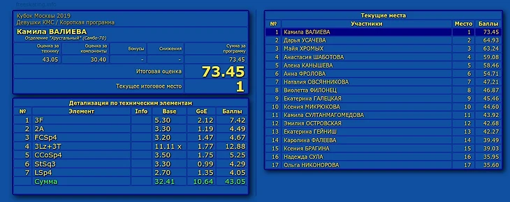 В прошлом году ей не хватало для успеха всего одного - хоть какой-то стабильности. Как и Косторная, до Этери Камила совершенно не умела кататься чисто. За весь прошлый сезон она прокатила чисто всего одну программу (короткую). И гляньте на неё теперь, у Этери. Камила выдаёт один чистый прокат за другим, ни разу ещё в этом сезоне девочка не оказывалась вне пьедестала.