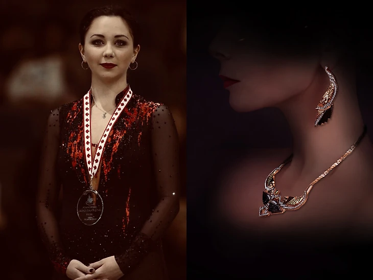 Все коллажи с Туктамышевой - это отдельное что-то! Самые мощные камни ее не заслоняют, только оттеняют и соответствуют. И не важно: маленькая она, большая. Хозяйка Медной горы, не иначе. Саша Самарин с бирюзой. И сам перстень просто шикарный, и Саша под стать. Даша Павлюченкова - очень. Тиффани - красота красивая, птица заморская. Все коллажи просто прекрасные, а эти на меня особенно посмотрели.