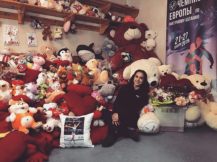 Алина Загитова стала лишь второй на чемпионате Европы в Минске, но традиционно получила гору подарков от болельщиков. Игрушки с трудом помещаются в комнату.