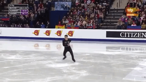 Денис Васильевс точно входил в тройку лидеров по количеству баннеров в его поддержку. На ряд ниже меня седела японка, которая приехала в Минск специально, чтобы поболеть за Дениса. Но увы, ни это, ни желтые штаны, ни Ламбьель за бортиком не помогли Денису оказаться выше в турнирной таблице.