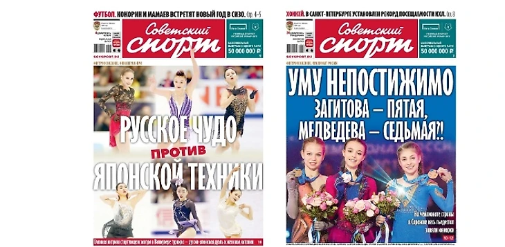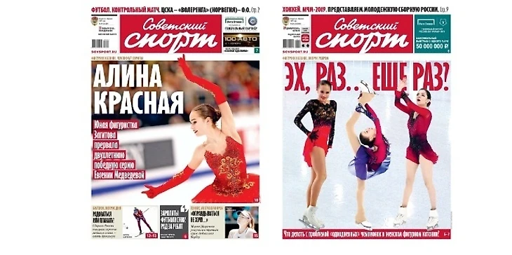 Что интересно, помимо разнообразия тематических изданий, иногда к популяризации фигуристов подключаются обще-спортивные и даже “гражданские” СМИ. Выпуская материалы/обложки накануне важных стартов или после больших побед.