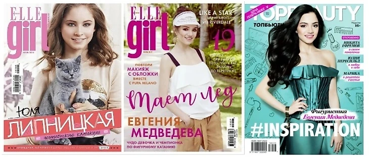 Кроме того, в своё время на обложках женско-модно-молодежных журналов засветились Юлия Липницкая и Евгения Медведева.