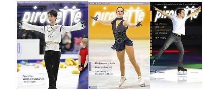 “Пируэт” выходит 10 раз за год, а принцип попадания на “главную”, насколько понимаю, схож с IFS-ким. Разница лишь в том, что здесь гораздо больше внимания уделено парам, как обычным, так и танцевальным, плюс соотношение европейцев и североамериканцев/азиатов примерно равное. Особое отношение по понятным причинам уделялось парам Алёны Савченко, которые красовались чуть ли не на каждом втором выпуске. Несколько реже появлялся Юдзуру. Цена журнала 5,5 евро.