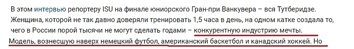 Например, автор сравнивает модель Тутберидзе с немецким футболом, американским баскетболом и канадским хоккеем: