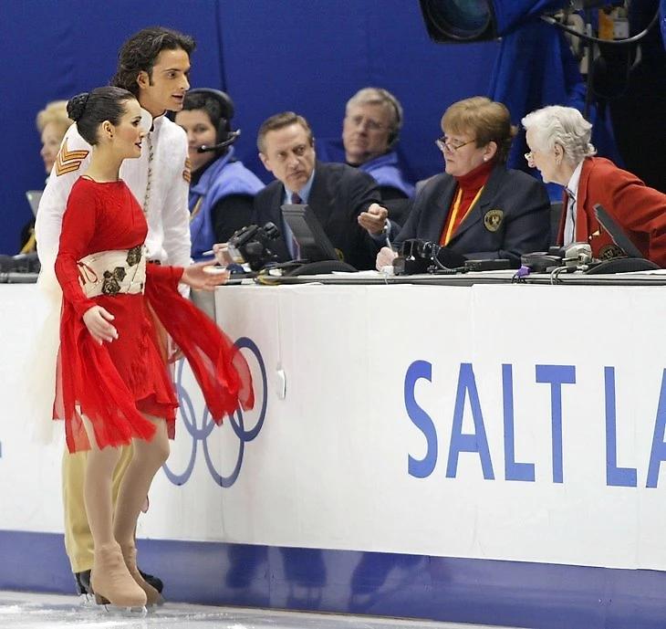 Стоящие за бортом Мари-Франс Дюбрей и Роман Агенауэр увидели расстегнувшееся платье и, понимая, что остановка моментально исключит французов из дальнейшей борьбы за золото, в жутком напряжении наблюдали за происходящим на льду. Позже Мари признается, что сама не смогла бы кататься в таких условиях. И она знала о чем говорит. Во время произвольного танца в олимпийском Солт-Лейке рукав ее платья зацепился за костюм партнера, в результате паре пришлось останавливаться и объясняться с рефери.
