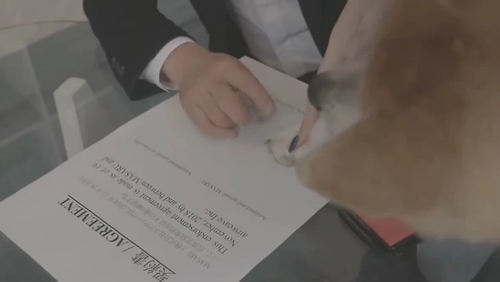 Подпись под контрактом – вернее, печать – поставила своей лапой собака Масару (японская порода – акита-ину), которую Загитовой в прошлом году вручал лично премьер-министр Японии Синдзо Абэ.
