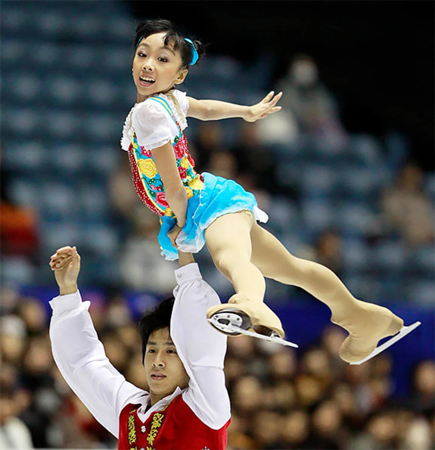 Вэньцзинь и Цун встали в пару в 2007-м – до этого они соревновались как одиночники. Хань – один из самых миниатюрных партнеров в мире: всего 170 см по данным ISU. Рост Бруно Массо – 184 см, Максима Транькова – 187, Владимира Морозова – 190. Это не мешает китайцу классно делать все элементы. По подсчетам японской программы Ice Scope, выброс Суй и Ханя оказался самым пролетным в короткой программе: партнерша улетела вперед на 5,39 м.