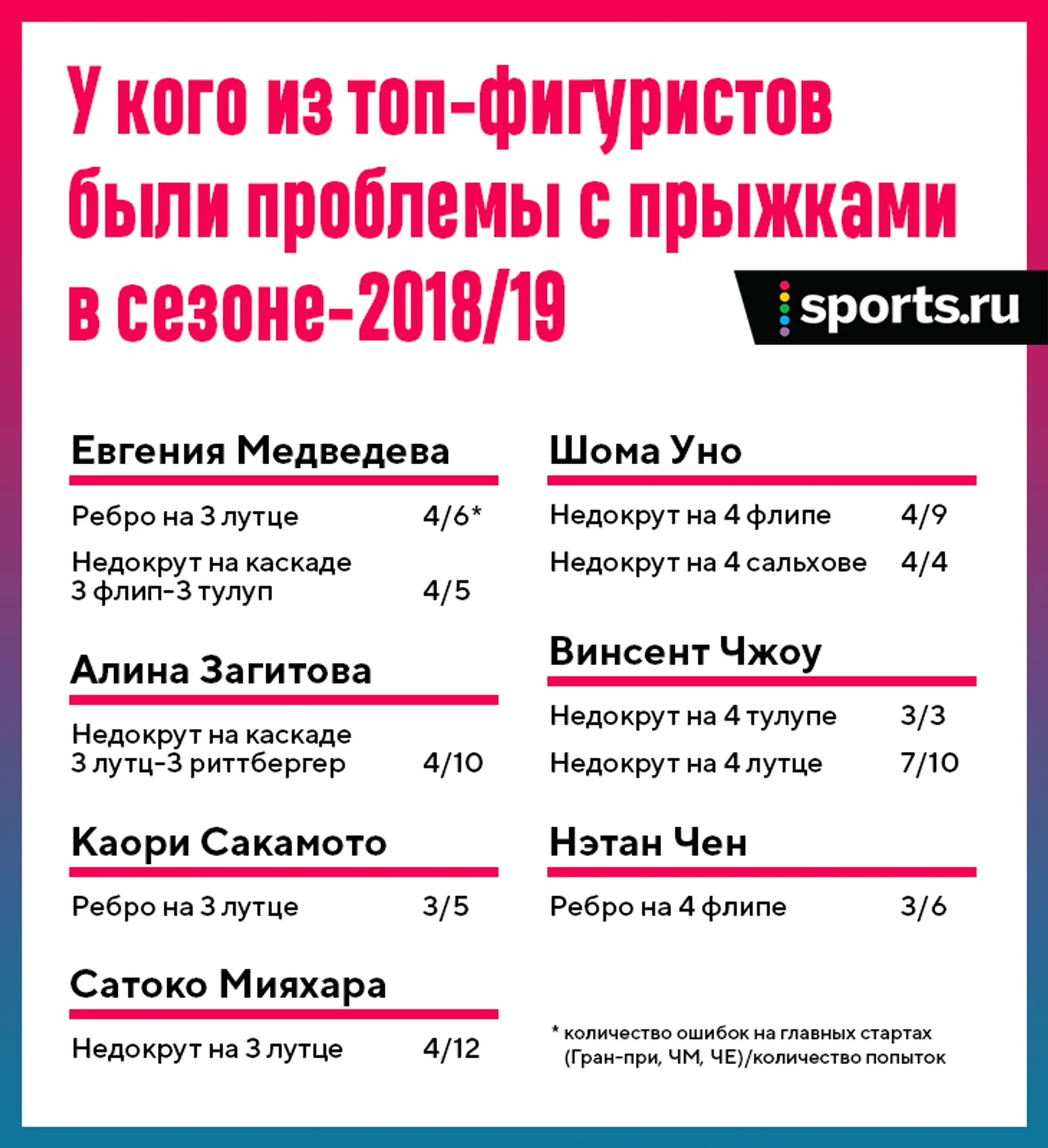 Недокруты бывают практически у всех. Даже эталонные прежде Медведева и Загитова в прошлом сезоне неоднократно получали галки от судей. Частыми недокрутами страдают кореец Ча Чжун Хван, американец Винсент Чжоу, японка Сатоко Мияхара. Можно, конечно, предположить, что правила писались под них – но кто выиграл от изменений, выяснится только из протоколов в новом сезона.