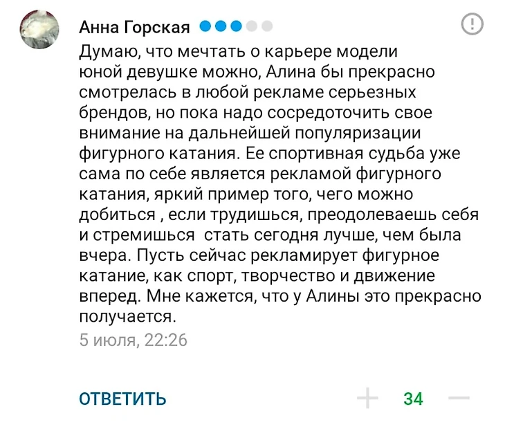 Несколько дней назад мы опубликовали пост с фрагментом интервью Алины Загитовой. Она сказала, что ей в перспективе интересна карьера модели: