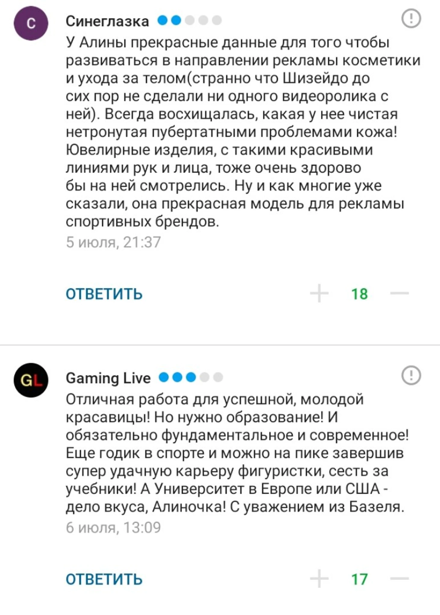 Мы предложили вам пофантазировать в комментариях, что лучше всего рекламировать Алине. Вот какие варианты вы предложили.
