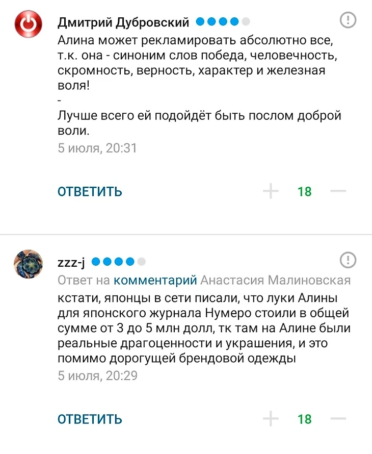Некоторые пользователи напомнили, что у Алины по сути уже идет карьера модели и рекламного лица крупных брендов.