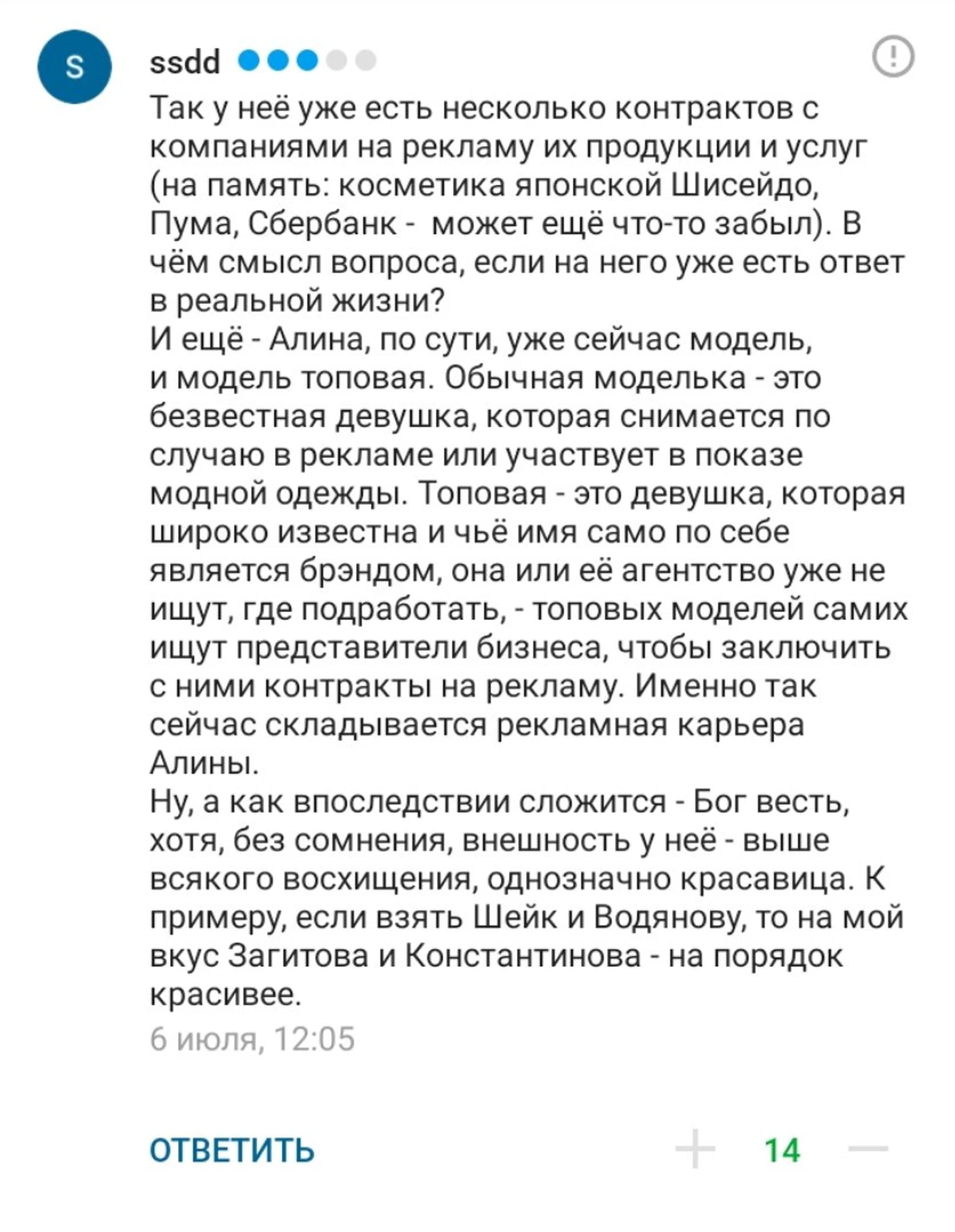 Собрали комментарии про карьеру модели.