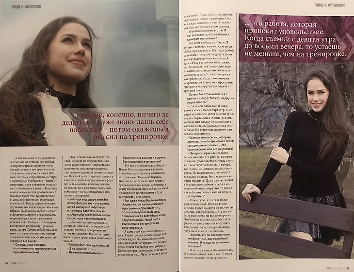 Интервью очень понравилось !Алина человек разумный ,правильно мыслящий и инициативный !Искренняя на льду со своими зрителями и такая же честная и правдивая в жизни!Цельная и сильная личность!