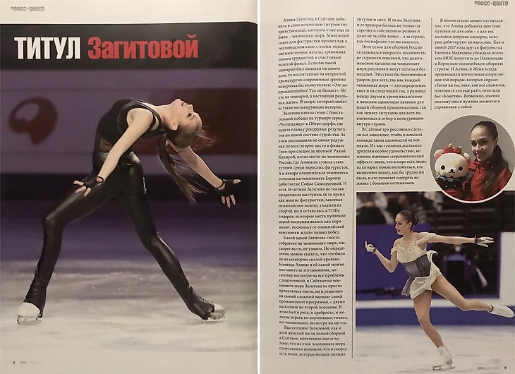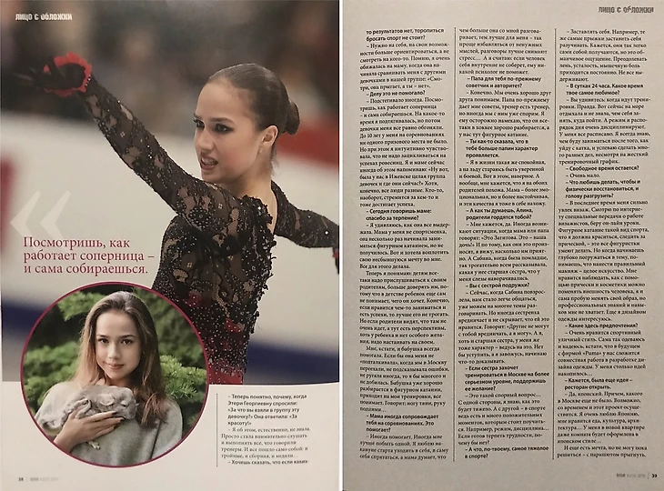 В сети вышли фотографии из журнала "Мир фигурного катания" с долгожданным для многих граждан нашей необъятной родины (и не только!) интервью Чемпионки ОИ/ Мира/ Европы/ ФГП/ России - Алины Загитовой (отдельных личностей, недовольных контентом Алины Загитовой, в расчет не берем)!