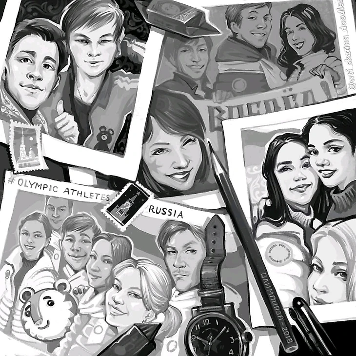 Из всех видов мне больше всего арты нравятся. Многие из них еще и со смыслом, иногда и с забавным. В начале сезона где-то ходил классный арт, где куча топовых фигуристов, и все в красном или в черно-красном (Боян, Миша, Алина, Женя, Сатоко,..). Здорово было нарисовано.