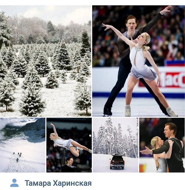 Чаще всего коллаж состоит из двух изображений: одно – фото фигуриста или пары, второе – красивый пейзаж, натюрморт и т.д. Однако коллаж может состоять и из большего числа картинок. Главное, чтобы он смотрелся гармонично. Для поиска красивой картинки авторы используют специальные группы в сети «Вконтакте». Так, например, если программа называется «Зима», то и в коллаже, как правило, будут преобладать зимние пейзажи.