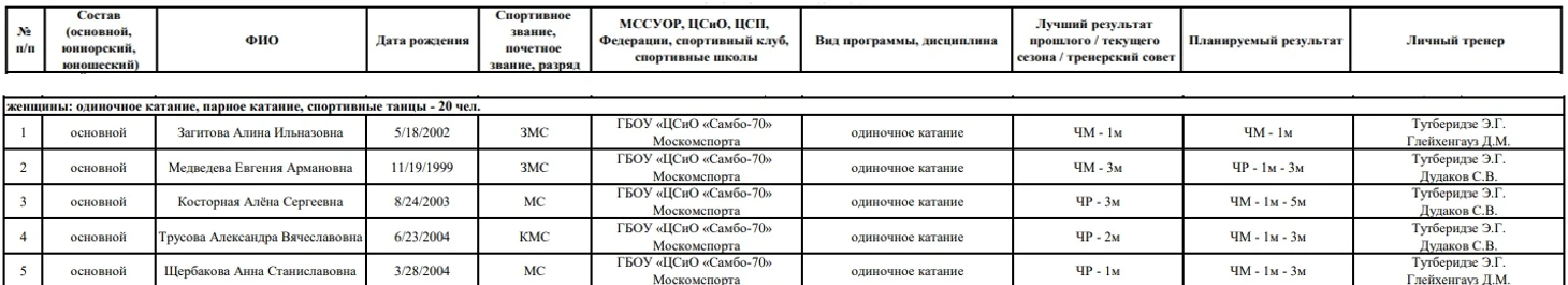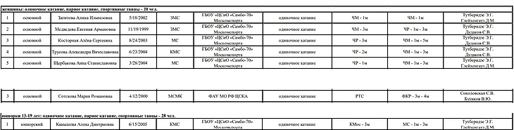 Да, тренеров Губановой например еще не обновили, но тренеры Канышевой (весной перешла в группу Тутберидзе), Маши Сотсковой (перешла к Соколовской) указаны верно. Другие спортсмены тоже вполне себе по документам тренируется там где и должны. А у Медведевой второй год основные тренеры Тутберидзе и Дудаков. Странно, не так ли?