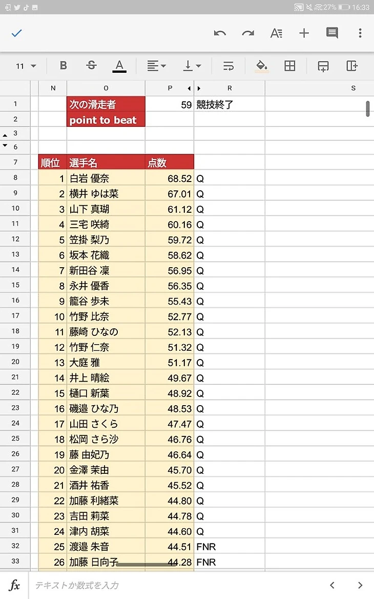 У юниорок лидирует Рино Мацуике с результатом 63.49 баллов, вторая - Мию Хонда, младшая сестра Марин - 54,47. К сожалению, я не нашла записей юниорок, так что обозреть их не смогу.