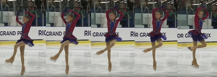 На этом скрине отрыв Анны Щербаковой на 3Lz, корпусом фигуристка скручивает обычные 180 гр, но вот зубец смотрит немного правее направления прыжка. Вероятно, подавляющее большинство экспертов припишет ей прер в 230 - 310 в зависимости от степени желания прикопать репутацию фигуристки. По факту, вряд ли такой заворот зубца дает хоть какое-то преимущество, первые несколько кадров после отрыва этот конек даже не вращается,