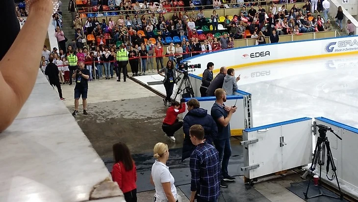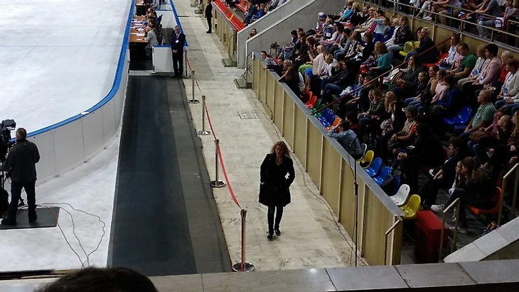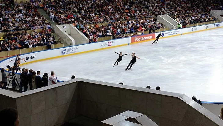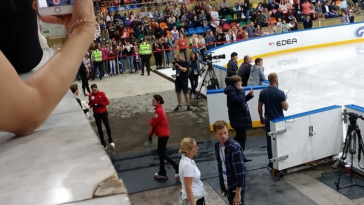 А теперь о неприятных вещах. Не знаю, как в подтрибунном помещении, но мне показалось, что Женя и Алина старались не смотреть друг на друга в отличие от подопечных Алексея Мишина. Те между собой хоть парой слов перекидывались. Вообще противостояние чувствуется во многих вещах. Даже их фанаты сидят порознь, и когда одни кричали «Алина», другие начинали скандировать «Женя».