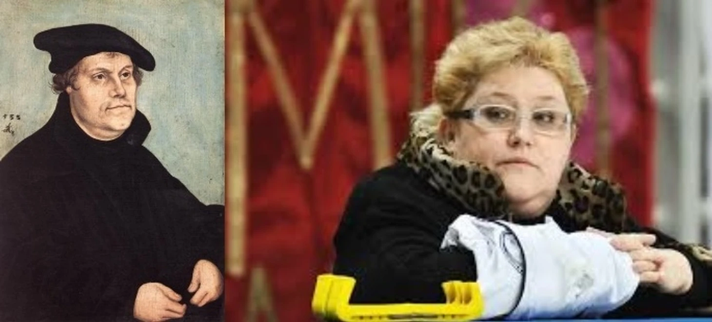 Лукас Кранах Старший — немецкий живописец и график эпохи Ренессанса, мастер живописных и графических портретов, жанровых и библейских композиций, синтезировавший в своём творчестве готические традиции с художественными принципами Возрождения. И его работа «портрет Мартина Лютера» - христианского богослова, инициатора Реформации, ведущего переводчика Библии на немецкий язык, чьим именем названо одно из направлений протестантизма — лютеранство. Есть ведь что-то от Нины Михалны?