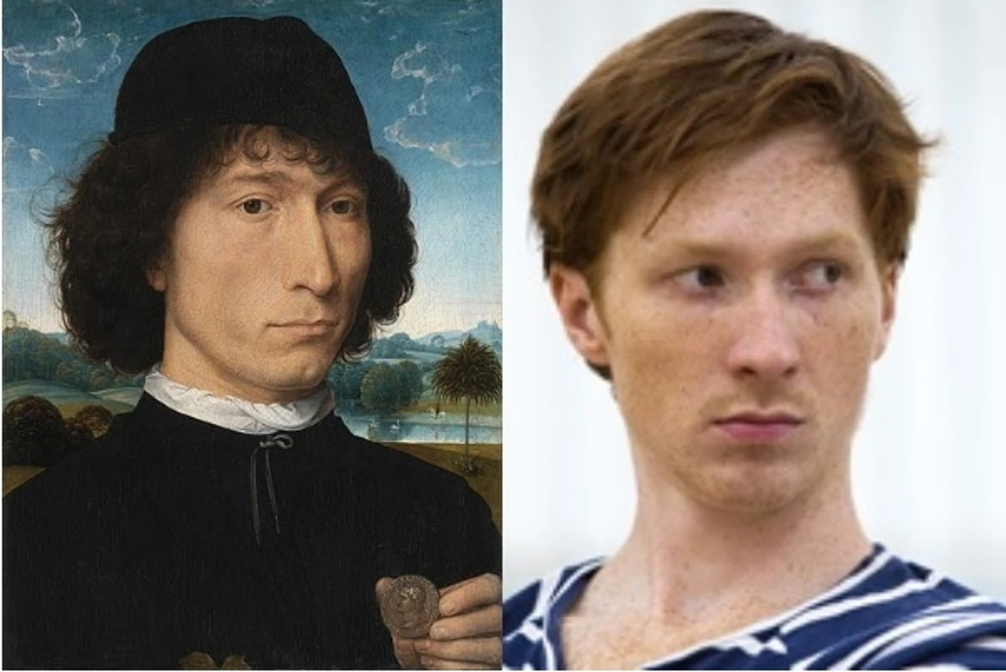 Ганс Мемлинг — фламандский живописец немецкого происхождения, один из наиболее значительных художников во Фландрии второй половины XV век и его «Портрет мужчины с римской монетой». А вот здесь есть что-то общее с Вовой, жаль, что не рыженький.