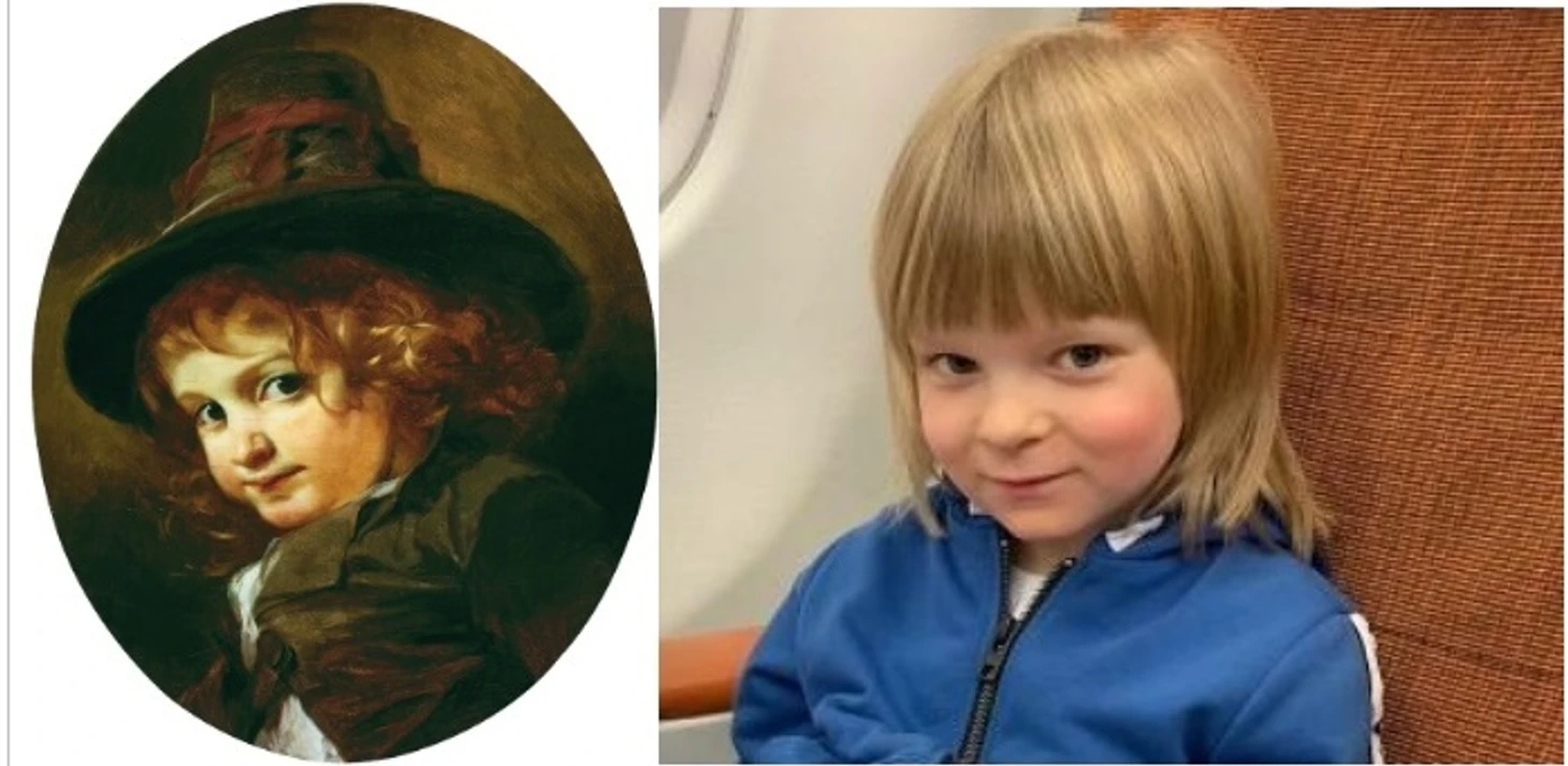 Здесь акцент скорее на Евгению, в детстве особо проглядывались её «зарубежные» корни (как и у девочки на картине), которых она почему-то стесняется.