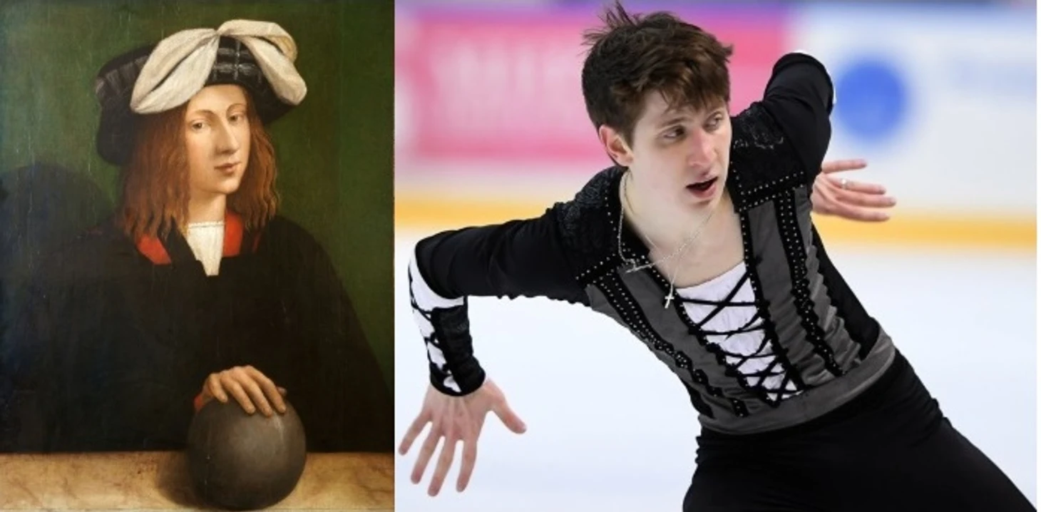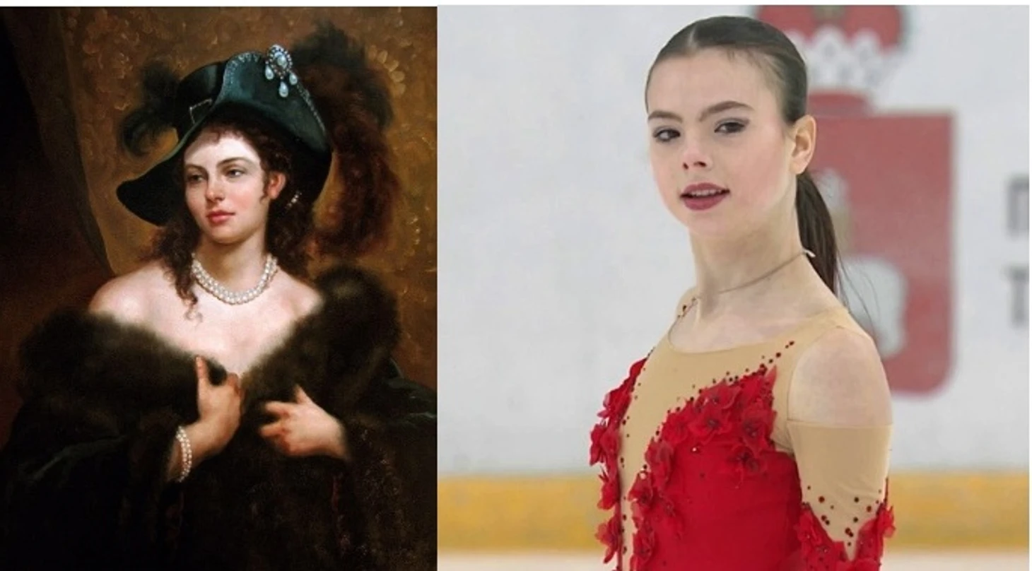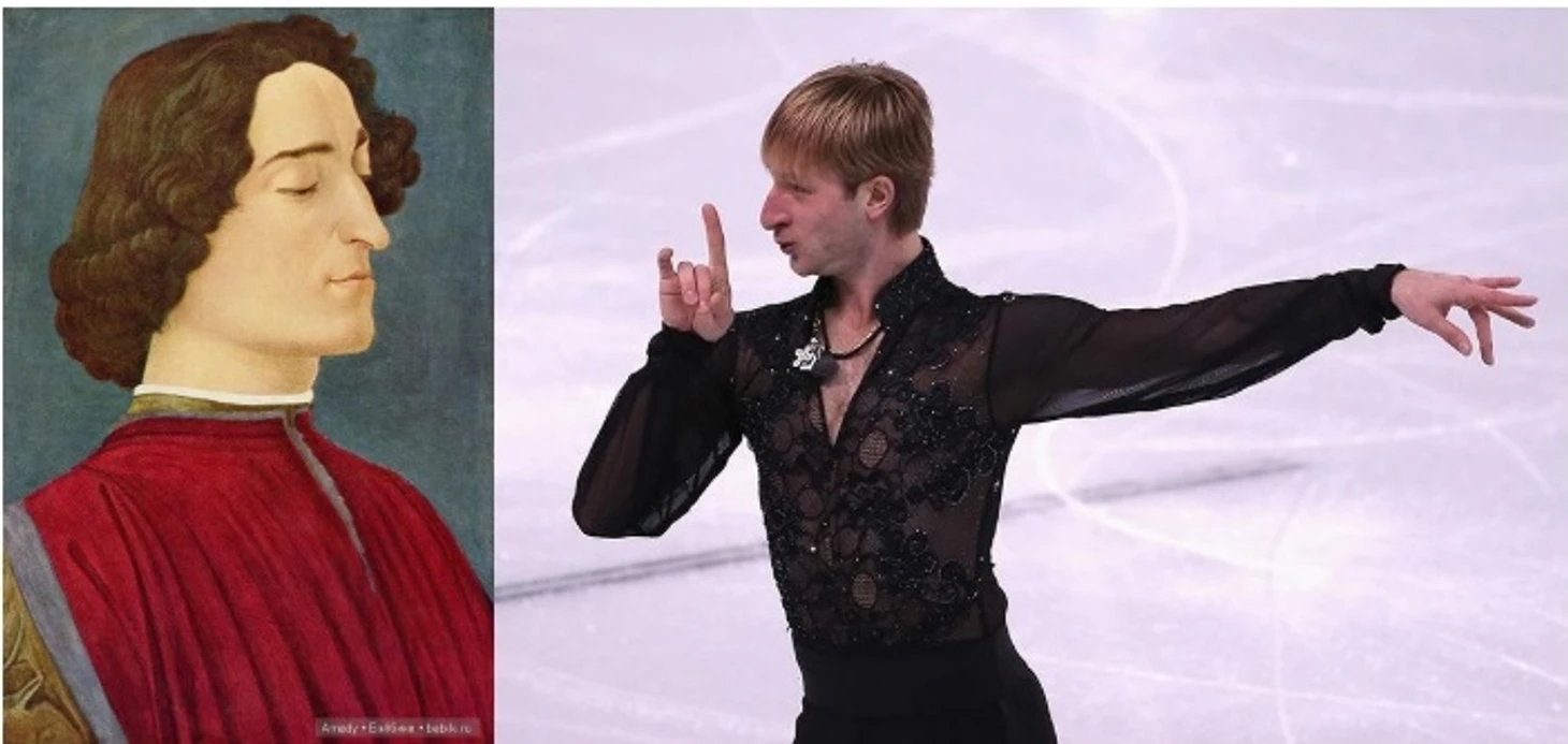 Следующее сравнение не моё, но понравилось. Изначально я искал фото по запросу: «фигуристы, похожие на исторических личностей», надеясь найти уже «готовые» примеры. Поиск толком не выдал ничего, кроме одной картинки, зато какой.