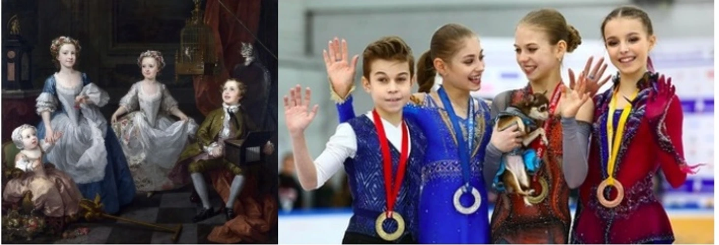 Уильям Хогарт — английский художник, основатель и крупный представитель национальной школы живописи, иллюстратор, автор сатирических гравюр, открыватель новых жанров (реализма в Англии) в живописи и графике. Картина под названием «Дети семейства Грэм», на которых изображены четыре ребёнка аптекаря короля Георга II. Так и просится ассоциация – «Тренировка в Хрустальном»: Камила, Алина, Саша и Даниил, но так как такого фото нет, пусть будет такое.