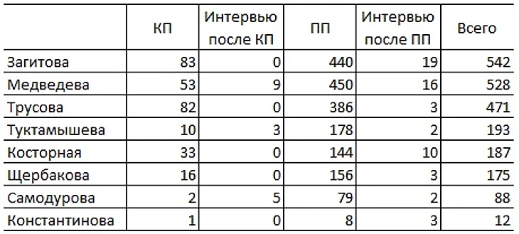 7-8 сентября 2019 года прошли контрольные предсезонные прокаты сборной России по фигурному катанию. На Ютуб-канале "Первый канал" выложены видео со всеми прокатами фигуристок, входящих в состав сборной, их интервью "Первому каналу". Прошло достаточно времени для того, чтобы накопилась некоторая статистика.