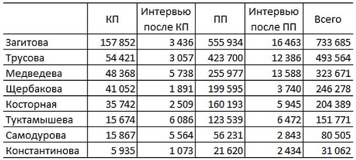 Прокат Медведевой ПП на ЮГПФ 2013-14 за пять лет посмотрело 33 046. Прокат Трусовой на ЮГПФ 2017-18 за два года - 728 221.