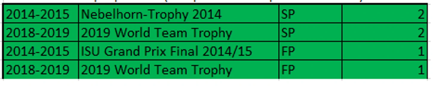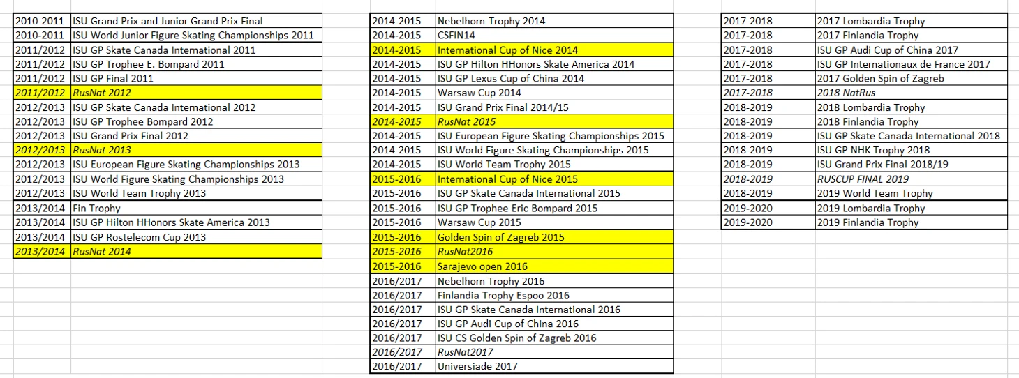 Вот, например, какие соревнования я разложила на запчасти для Лизы Туктамышевой: