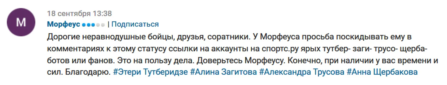 Вот способ, которым Морфеус собирает себе списки банов - https://www.sports.ru/profile/1057830779/status/2103226/