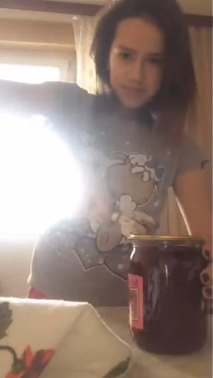 Алинка хулиганит))Завтрак чемпионский порадовал-половина банки повидла,пока не видит бабушка))Прелесть)